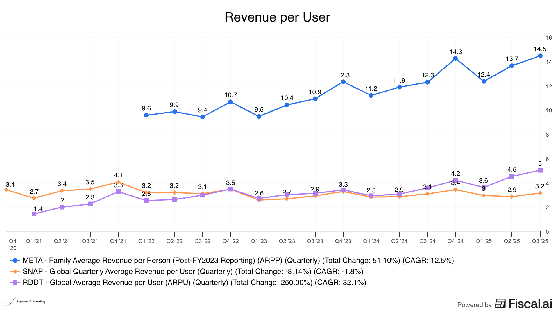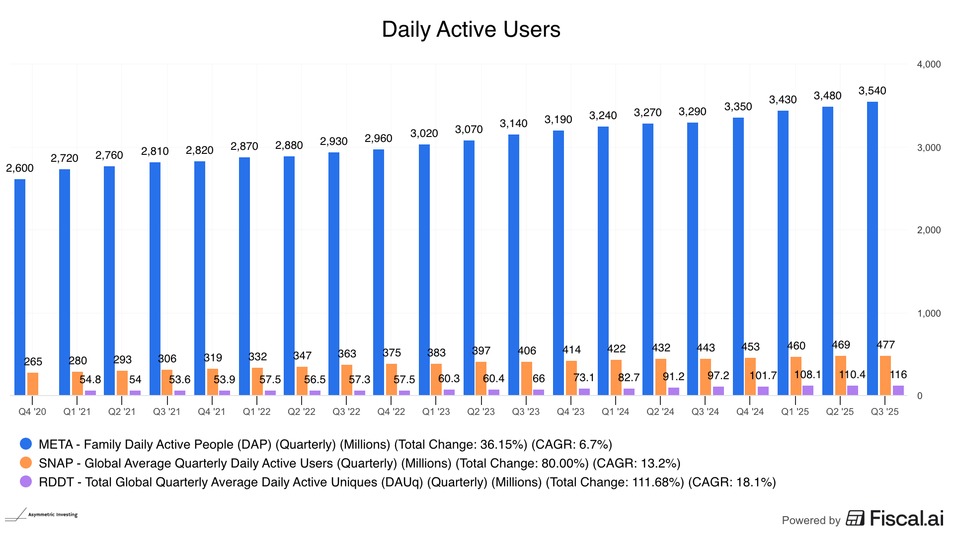We see this with user numbers. Meta’s lead is compounding despite already serving nearly the entire world.