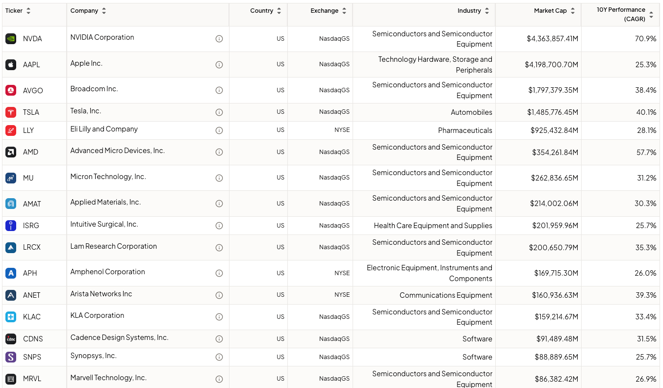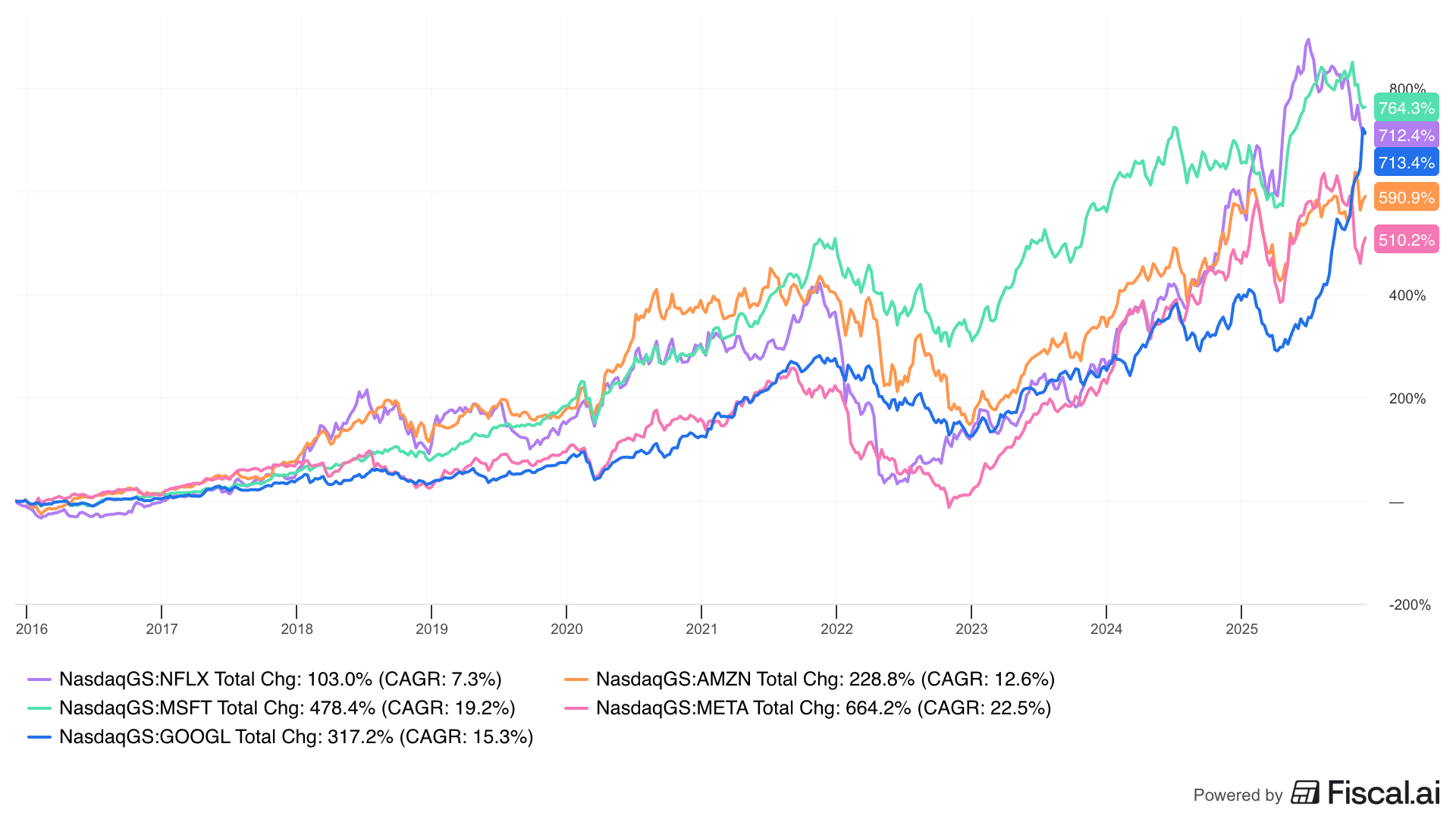 None of these companies did anything revolutionary over the past ten years. They just compounded their winning for a decade, driving market-beating returns.