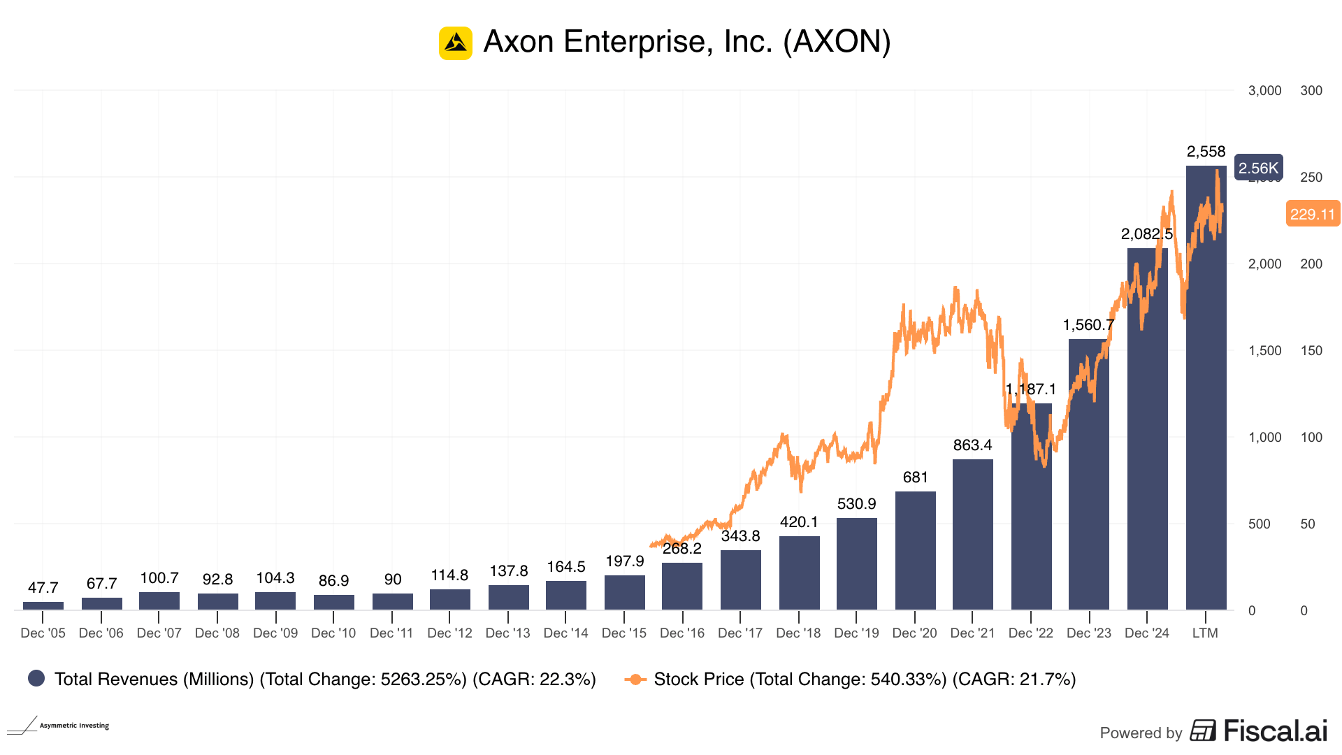 Investors eventually realized $Axon Enterprise, Inc.(AXON)$ ’s 30% annual growth that started a decade ago was sustainable.