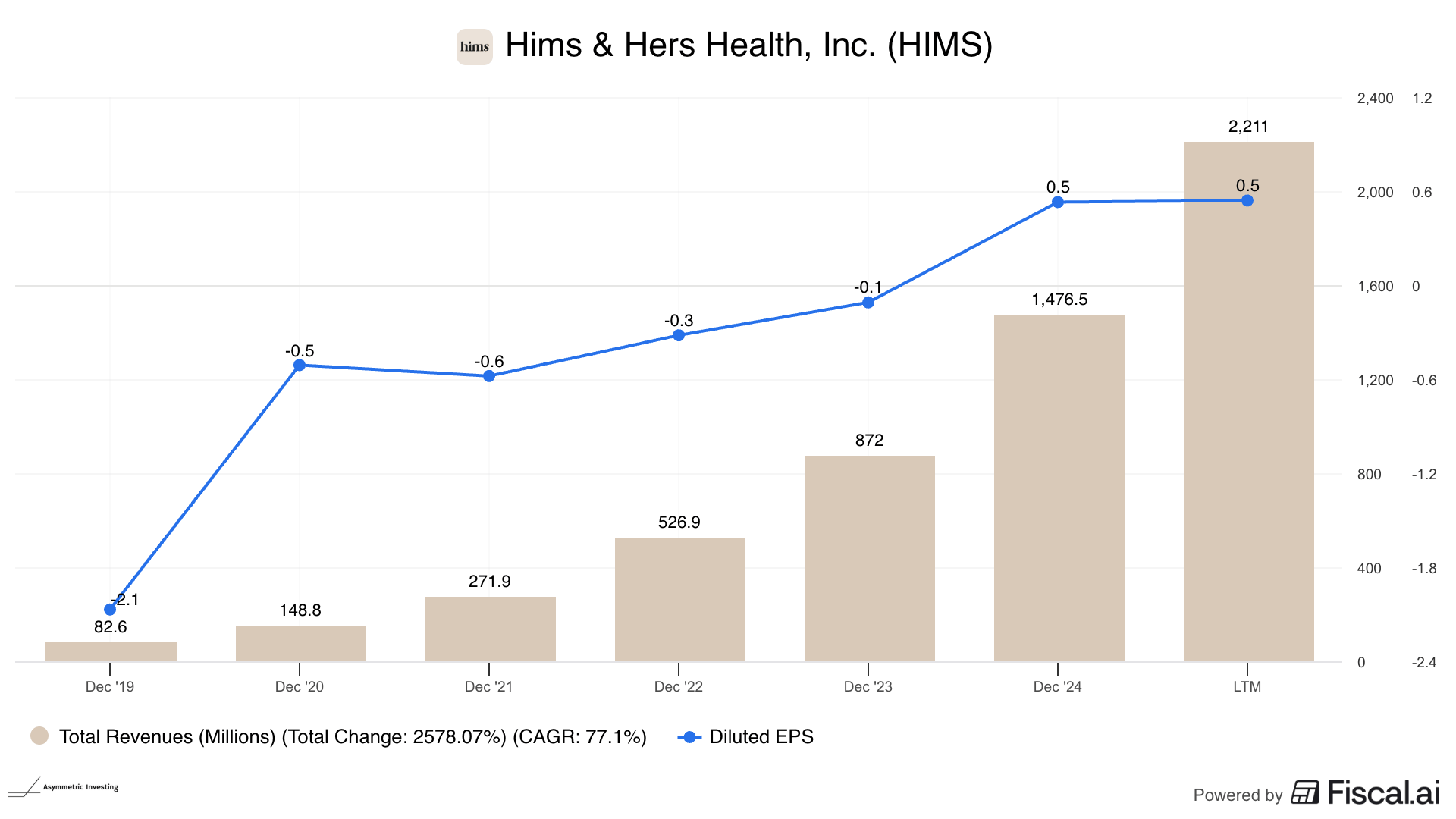 Take Hims & Hers as an example. The company is trying to disrupt the multi-trillion dollar medical and pharmaceutical industry and has grown at a compound annual rate of 77.1% since 2019…