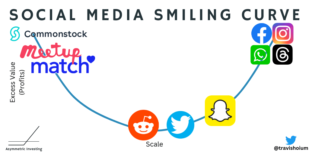 On the right side of the scale, companies can build a big business and leverage operations to grow profits in an outsized way. In simple terms, the economics of a company with 1 billion users are much better than a company with 100 million users. And in a global industry, the upside can be several billion users of your product.