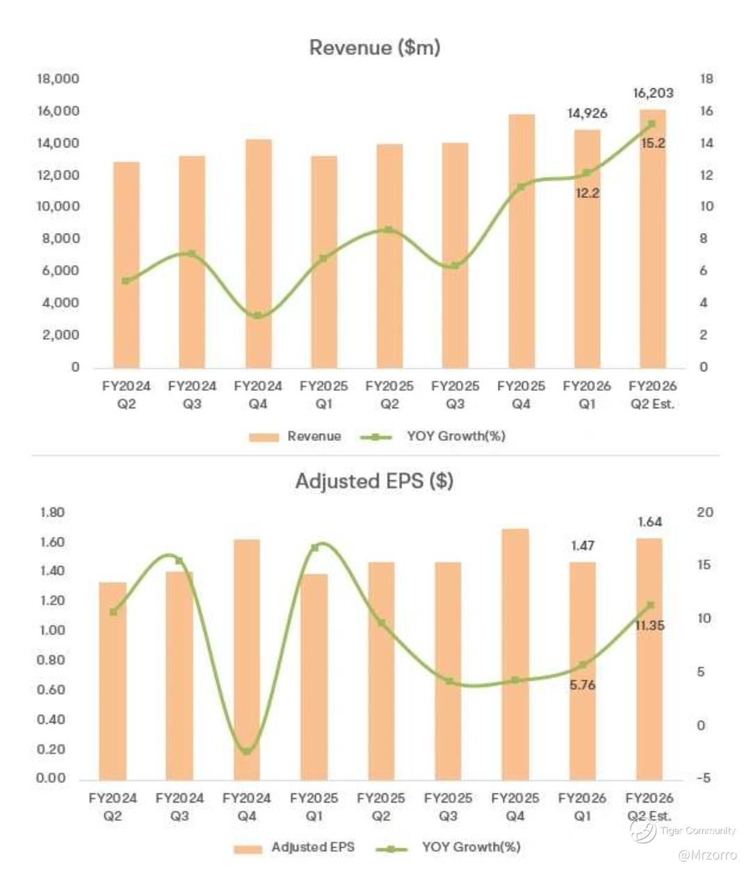 – Non-GAAP (adjusted) EPS: about $1.64, implying growth of around 11%.