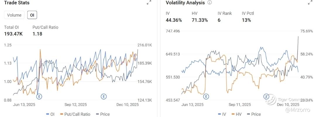 This volatility crush is underscored by an exceptionally low IV Rank of 6 and IV Percentile of 13% indicating that option premiums are historically cheap as the market prices in a stabilization of the recent turbulence. Despite the attractive pricing for contract buyers, the Put/Call Ratio of 1.18 on a total Open Interest of 193.47K suggests that traders are adopting a defensive stance and utilizing the lower premiums to hedge against a potential pullback rather than betting on continued upside momentum.