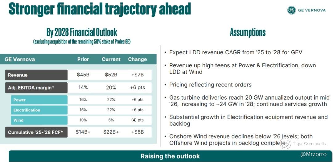 GE Vernova's spike after the update is anchored in a much steeper growth path. Management now guides 2025 revenue to 36–37 billion USD and 2026 to 41–42 billion USD, and has lifted its 2028 target to 52 billion USD with a 20% adjusted EBITDA margin. At the same time, the company raised its 2025–2028 cumulative free cash flow outlook from at least 14 billion USD to at least 22 billion USD and still plans around 10 billion USD of capex and R&D over that period, while total backlog is expected to climb from 135 billion USD to about 200 billion USD.