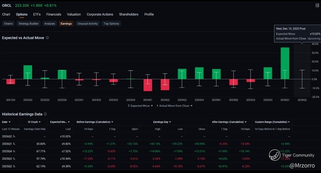 Before the financial results were released, Oracle's options market were pricing in a 10% move in the share price up or down a day later.