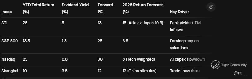 Strategic Shift Slam: Overweight STI Banks for 20% Year-End Pops โ Asia's the Undervalued Empire! ๐ฏ๐ก๏ธ Year-end tweaks: Overweight DBS at $53 dips for $70 targets, add SGX for volume boom. EM bets: Long BABA calls on China stimulus for 25% surge. US hedge: Short S&P puts if PCE cools. My move: Shifting 20% from US tech to STI ETFs โ Asia's 10.3% forecast crushes US 6.5%, rotations roar on dollar dip.
