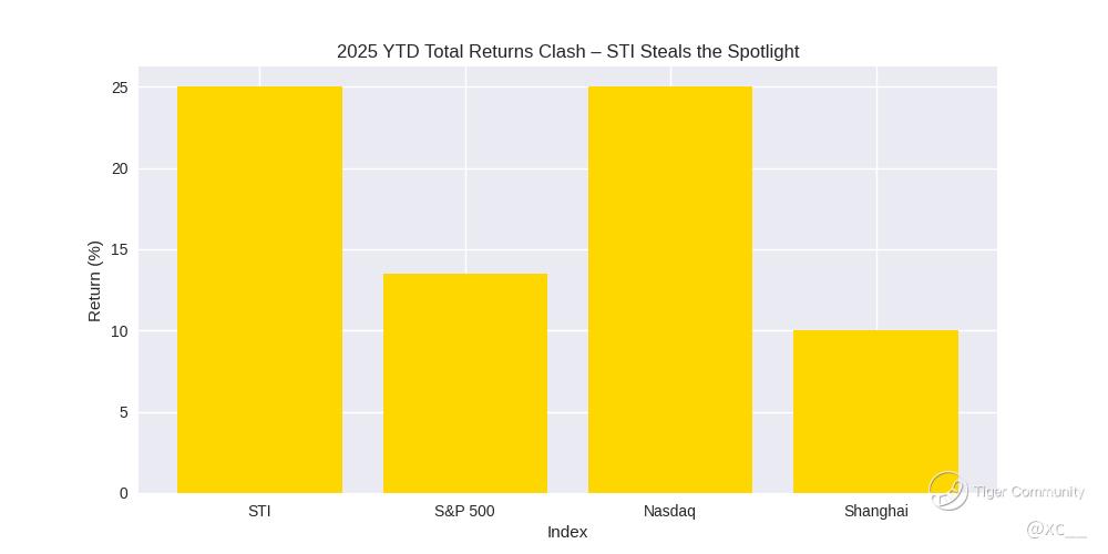 Singapore surge supreme: STI's 25% YTD with 5% dividends laps US, DBS/OCBC yields 4-5% buffer tariffs for 20% upside.