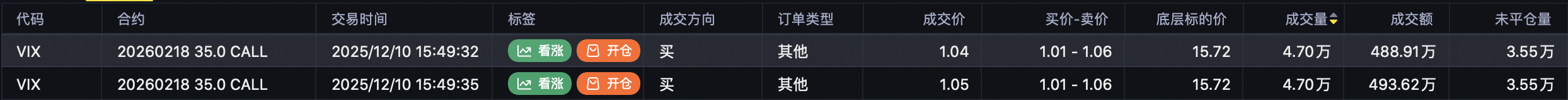 Additionally, just before Wednesday's close, a buyer picked up 100,000 contracts of the VIX Feb '26 35 call $VIX 20260218 35.0 CALL$ , for a total premium of approximately $10 million. This suggests potential near-term market weakness.