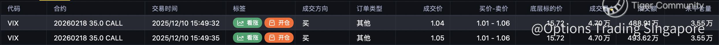 Separately, just before Wednesday’s close, a buyer accumulated 100,000 contracts of the Feb ’26 35C $VIX 20260218 35.0 CALL$ , spending roughly $10 million in premium. This kind of positioning typically points to near-term market stress or rising volatility.