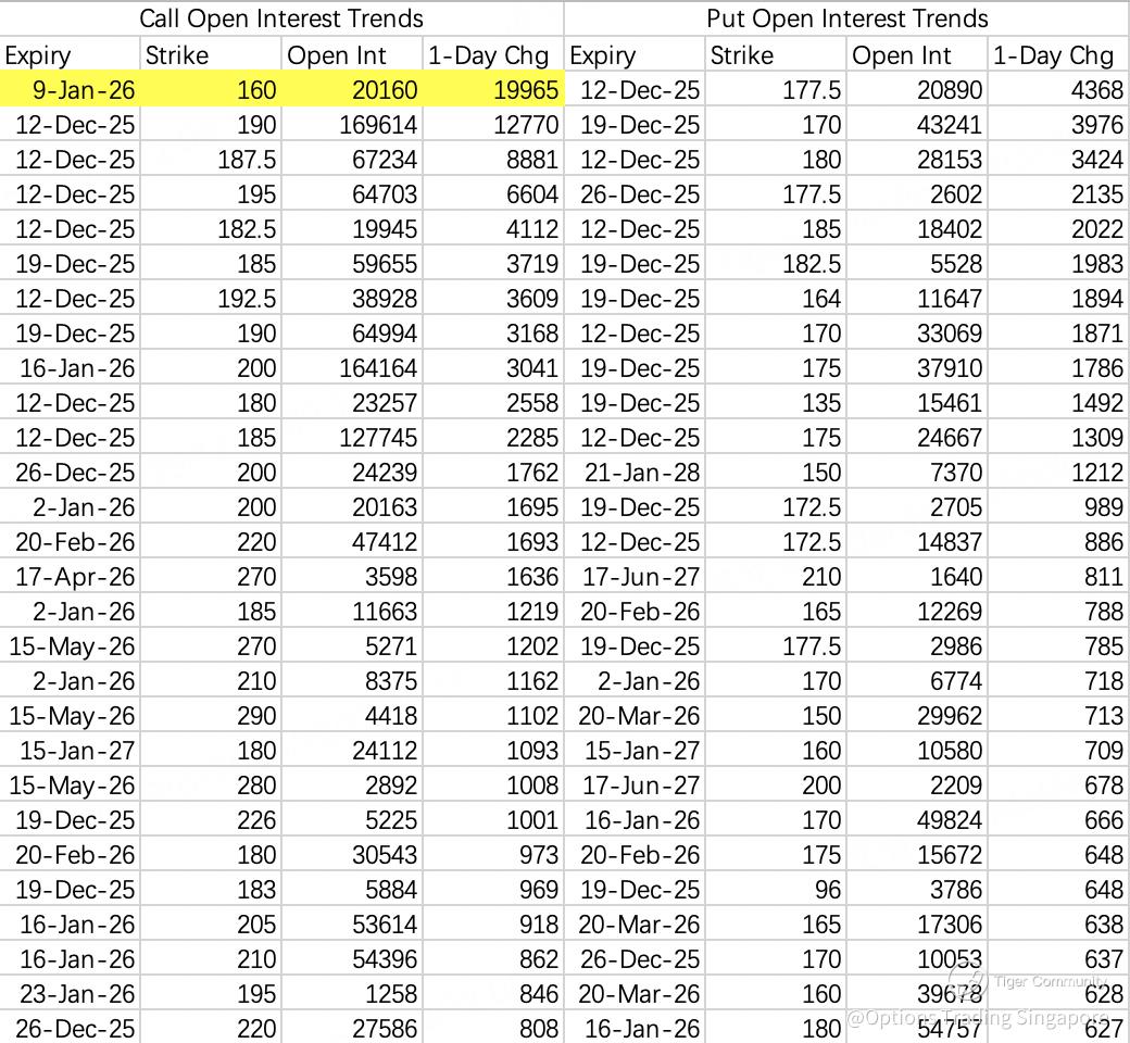 Wednesday evening saw a large and notable call block: over 20,000 contracts of the 160C $NVDA 20260109 160.0 CALL$ , representing more than $50 million in premium.