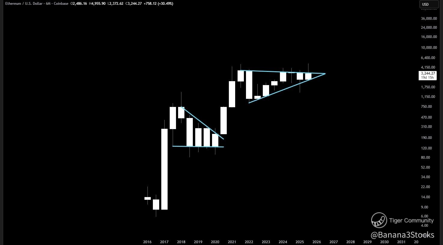 Breakout likely within the next couple of months, and after 4 years of ranging it'll probably be violent.