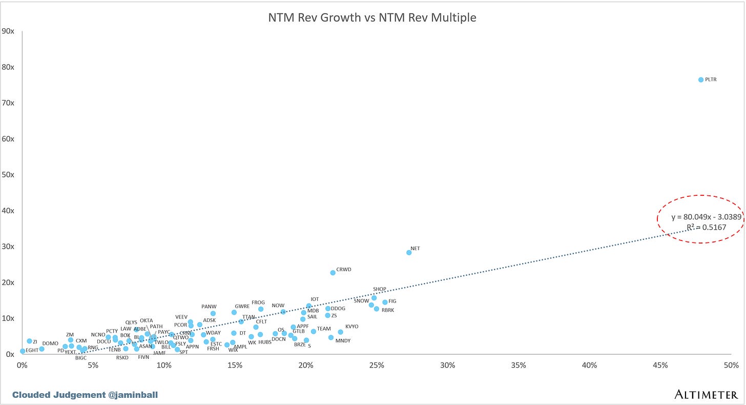 Scatter Plot of EV / NTM Rev Multiple vs NTM Rev Growth