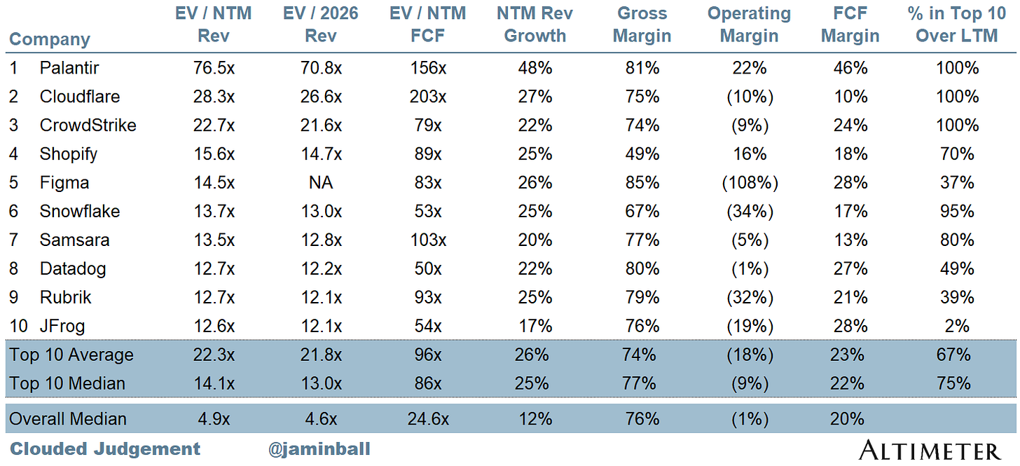 $Palantir Technologies Inc.(PLTR)$ $Cloudflare, Inc.(NET)$ $CrowdStrike Holdings, Inc.(CRWD)$ $Shopify(SHOP)$ $Figma(FIG)$ $Snowflake(SNOW)$ $Samsara, Inc.(IOT)$ $Datadog(DDOG)$ $Rubrik Inc.(RBRK)$