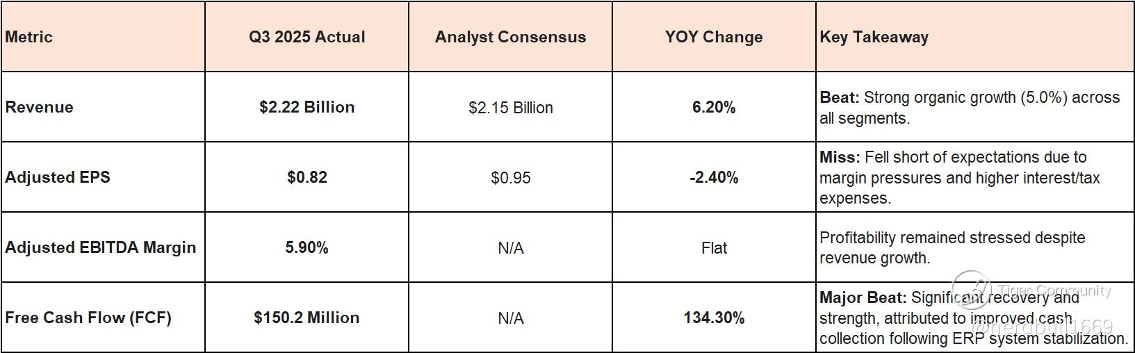 ABM Industries reported its fiscal Q3 2025 earnings on September 5, 2025. The results presented a mixed picture that highlighted the company's strong top-line growth and cash generation, but also exposed the increasing pressure on core profitability, which ultimately led to the lowered full-year guidance.