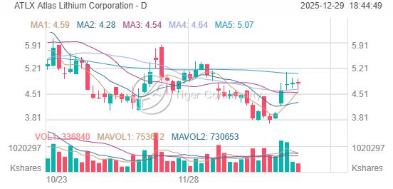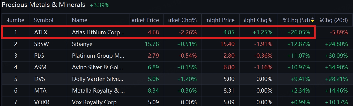 In the past five days, $Atlas Lithium Corporation(ATLX)$ 's share price has risen by 26.05%.