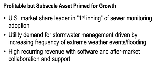 BMI's flow measuring and water metering equipment provides its customers with the data they need to manage their water distribution, to detect leaks, to ensure accurate billing, to ensure regulatory compliance and to optimise performance. The reliance on these outcomes by their customers makes BMI's products and services mission-critical. This is an essential for me, as it is the foundation of pricing power.
