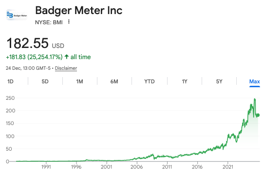 $Badger Meter(BMI)$ is a company that I've been aware of for a while, but prior to writing this report, it was also a business that I knew very little about. I first became aware of BMI as part of my linearity analysis of the S&P 600, which is the US small cap index. Since their IPO in 1985, their share price has grown more than 25,000%, often with low volatility.