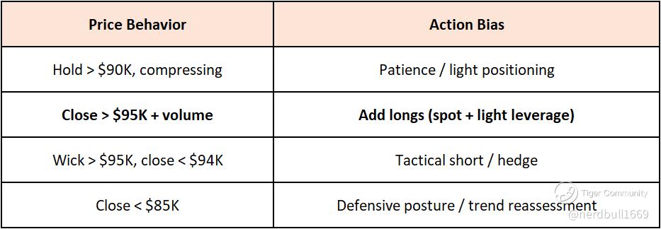 A confirmed breakout above $95,000 statistically implies a 50–80% increase in realized volatility, with $5,000+ daily ranges becoming normal rather than exceptional. This volatility expansion historically supports trend continuation early, but demands wider stops, smaller size, and disciplined trailing once momentum matures.