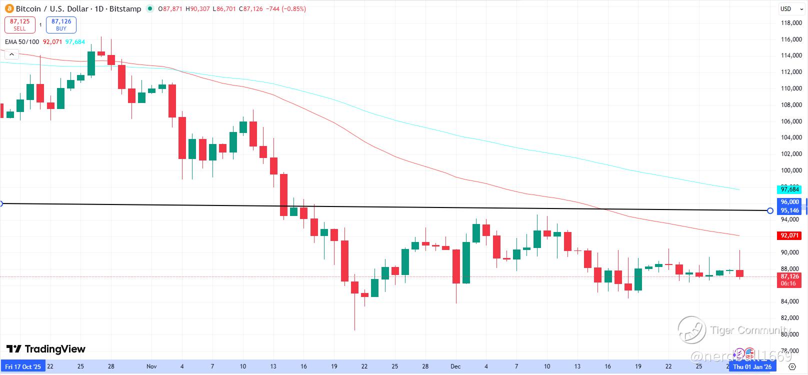 At present, Bitcoin appears to be building energy rather than distributing it. The $85,000–$95,000 range is best interpreted as a consolidation phase within a broader bullish trend. The market is effectively waiting for a catalyst to resolve this compression. Until the $95,000 level is decisively cleared or $85,000 is lost, patience and level-based discipline remain critical.