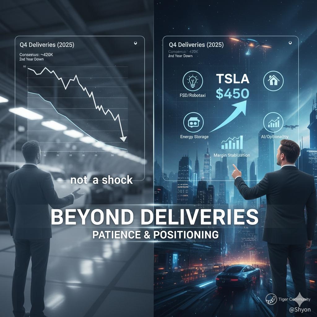 Overall, I'm not overly alarmed by a soft Q4 print. I see this phase as more about patience and positioning than reacting to one quarter's data. If the market continues to compress Tesla into "just another auto stock," that may actually create the setup for the next re-rating—once the story evolves beyond deliveries again.