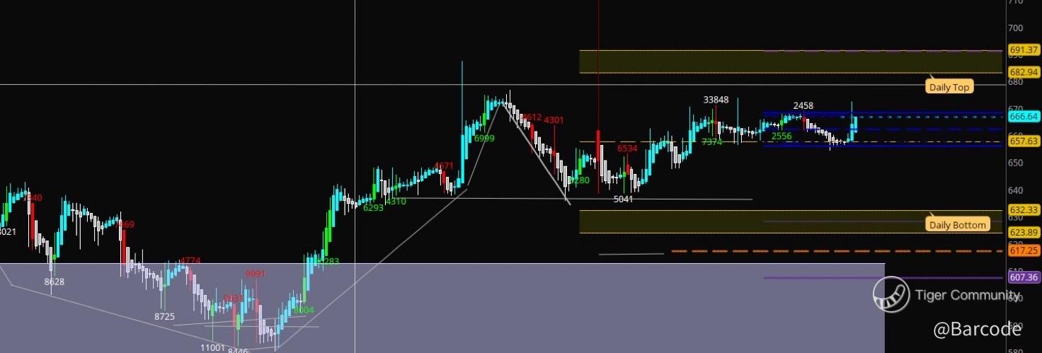• Expansion trigger on acceptance above $666.80, which opens the door for momentum continuation out of compression.