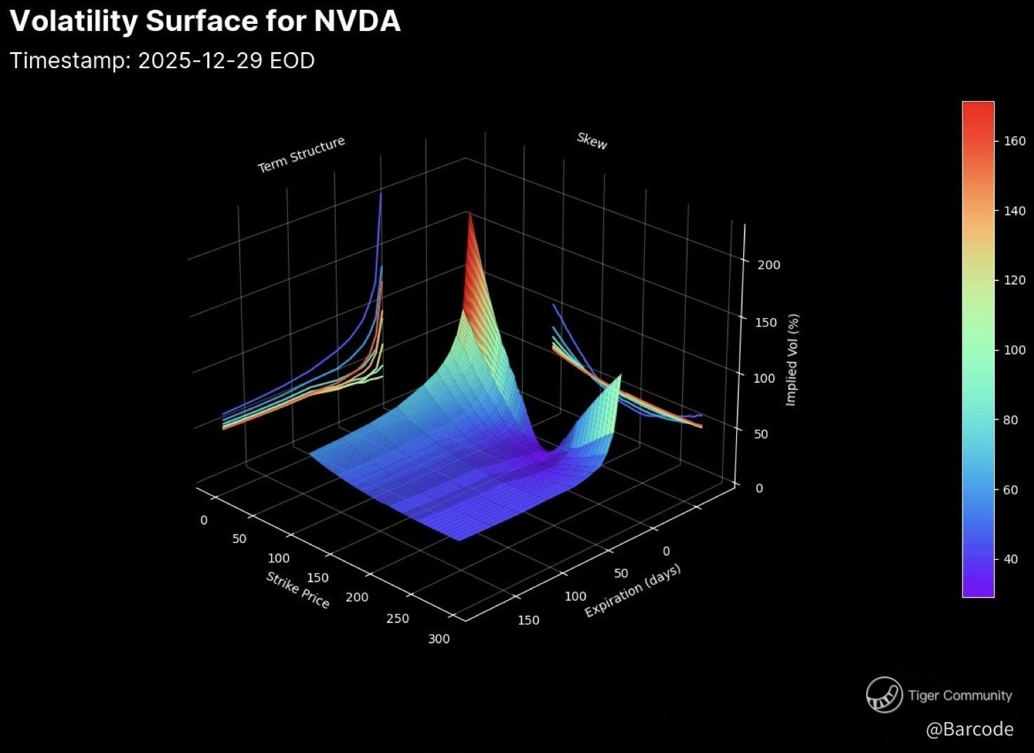 Taken together with NVDA’s flatter volatility smile and subdued front-end IV, this flow reinforces the same message across leaders. Fear is not being bid. Duration is being accumulated. Liquidity is rotating into long-term upside structures.