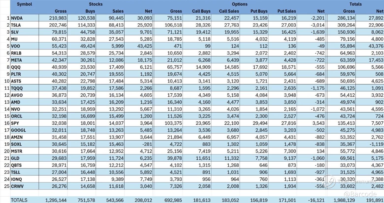 Top 5 symbols controlling the tape: $NVDA $TSLA $SLV $MU $VOO