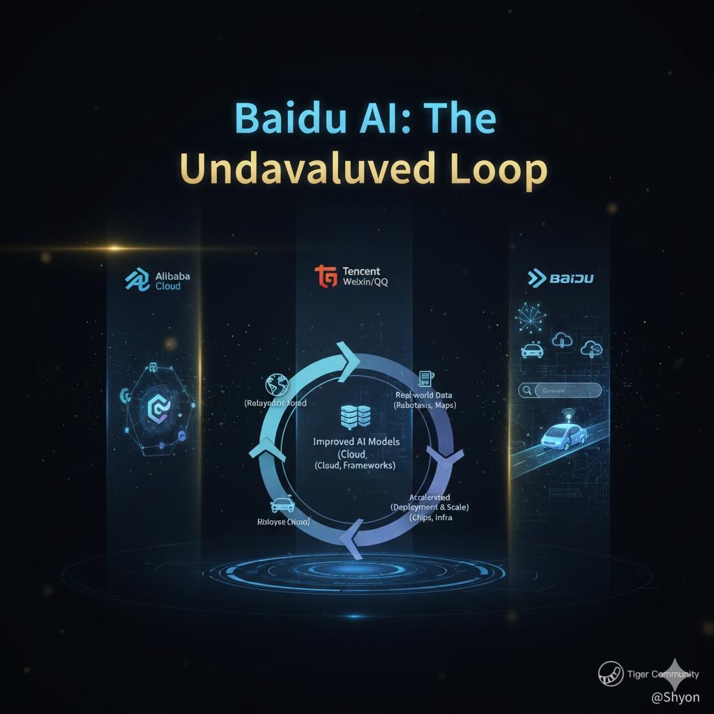 Comparing $Alibaba(09988)$ , Tencent, and Baidu, I think Baidu is closest to a Google-style AI loop in China. Alibaba leads cloud, Tencent dominates social data, but Baidu uniquely links search, maps, cloud, large models, and robotaxis. Since the market still prices it mainly as a search stock, I believe Baidu’s AI upside remains undervalued.