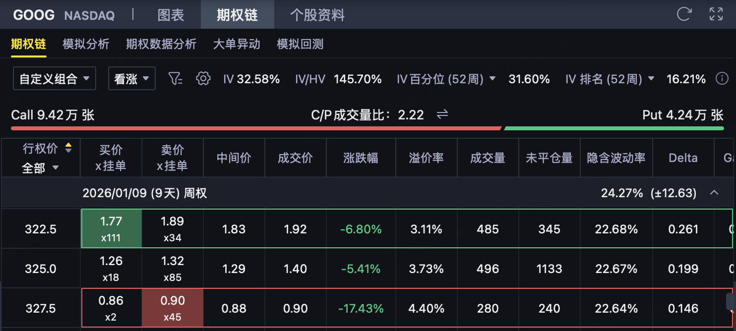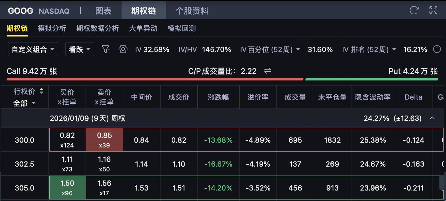 Near the end of the year, the U.S. stock market has gradually entered the rhythm of holiday trading, the activity of institutional funds has declined, and the overall trading volume has continued to decline. Indexes and individual stocks have generally shown a narrow range of fluctuations, and directional opportunities have been significantly reduced. In an environment of weak liquidity and limited volatility, the winning rate of simply betting on rising or falling decreases, while the option strategy with "range judgment" as the core has more advantages. Based on the current market characteristics of light transactions in U.S. stocks at the end of the year and the lack of trend in stock prices, investors can consider$Google (GOOG) $On options, a selling iron eagle strategy is constructed. By collecting premium within a reasonable shock range, the low-volatility environment is transformed into a stable source of income on the premise of controlling the maximum risk.