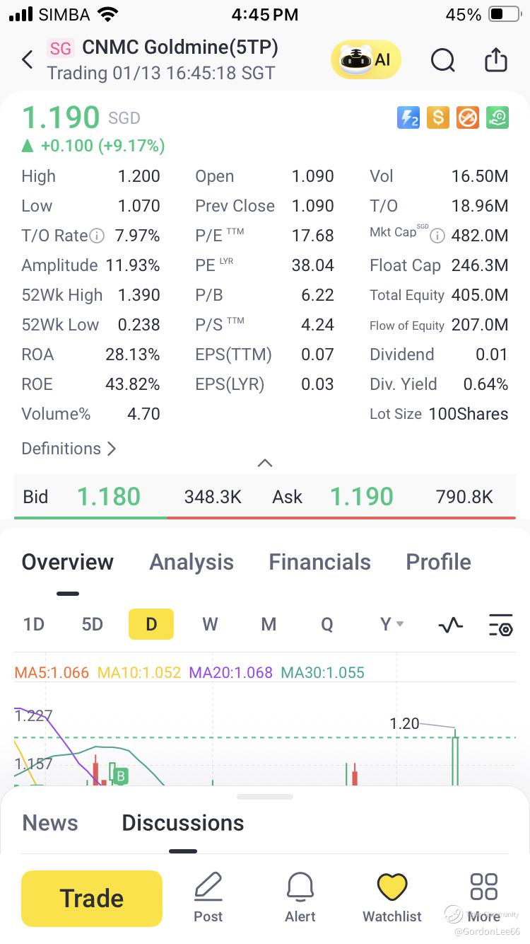 $CNMC Goldmine(5TP.SI)$ Congratulations to all those still holding on to this counter, especially those who dare to add when it dipped below $1.00.  We are back and will be attempting to scale new high soon.  Let's enjoy this ride up together.  Huat Ahhhh...👊.
