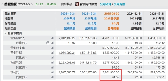 攜程25年三季度淨利潤比貴州茅臺還高