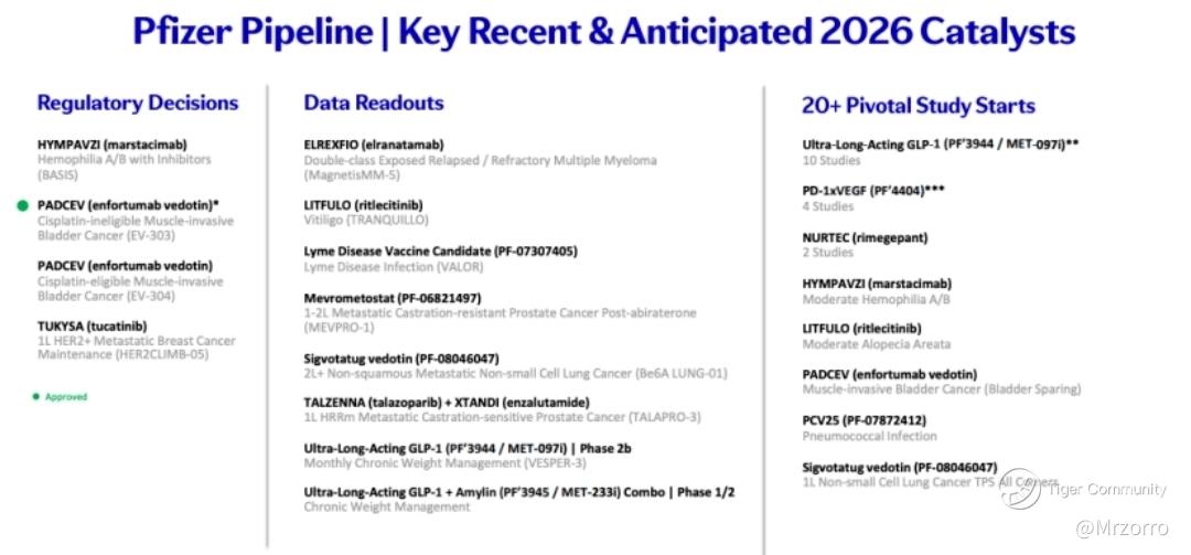 ~Obesity as a Core Vertical: Pfizer has explicitly identified obesity as a key growth pole, utilizing a dual-path strategy involving the Metsera pipeline (long-acting injectables) and in-licensed oral GLP-1 assets ("Oral + Injectable").