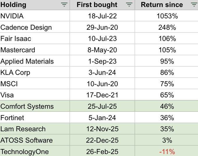 Lam Research is up 35% since I first entered in 2 months ago. Positions in green have been held less than 1 year.