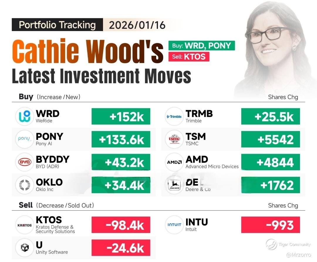 Looking back at Cathie Wood's trades last Friday, she not only bought into TSMC and AMD, but the more significant signal was her full-scale bet on autonomous driving, particularly her strong conviction in Chinese autonomous driving companies.