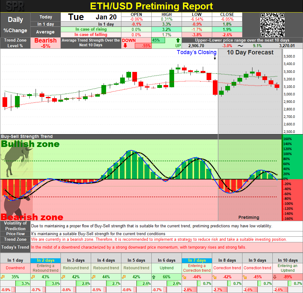 Over the next 10 days, ETH/USD is expected to experience balanced directional movement, with a 5:5 ratio between downward and upward moves. However, downside intensity is projected to remain stronger than upside intensity, reinforcing the prevailing bearish bias.