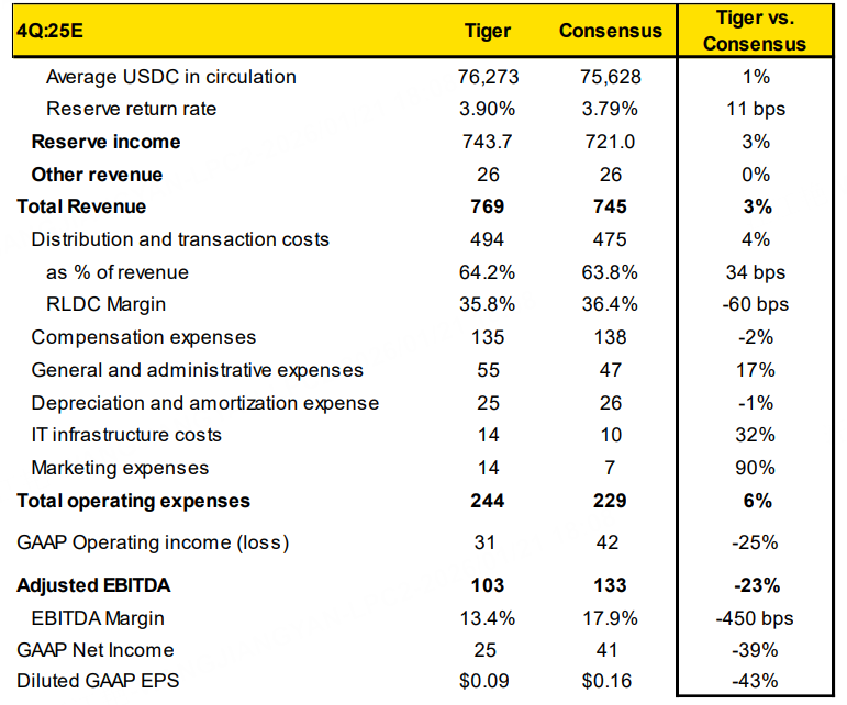 Based on this, below are modeling of $Circle Internet Corp.(CRCL)$ ’s 4Q performance: