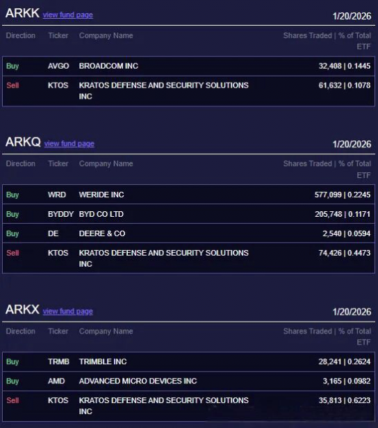 Cathie Wood Buys $10M Broadcom & Chinese Tech, Sells $20M KTOS