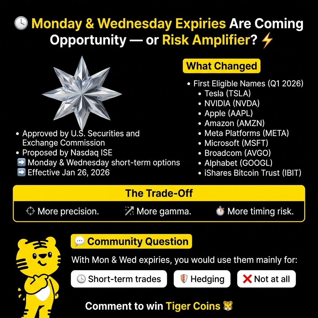 With these new midweek expiries, I’d mainly use them for short-term trades and tactical hedging rather than holding longer. Short-dated options are effective for quick moves or adjusting exposure around headlines, though post-market risk and unexpected assignment still need close attention.