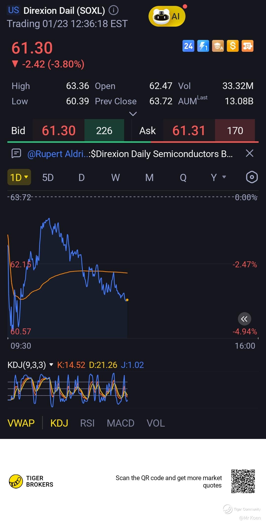 $Direxion Daily Semiconductors Bull 3x Shares(SOXL)$ $Direxion Daily Semiconductors Bull 3x Shares(SOXL)$