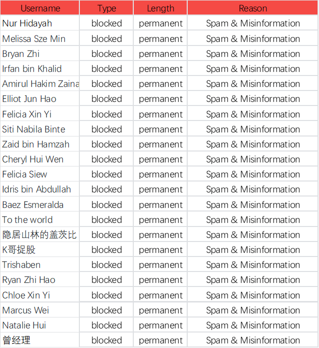 Here is the List of Banned Users Recently: