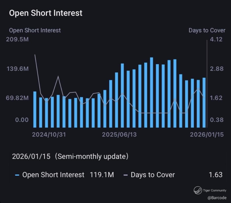π₯ Short interest remains heavy near 119M shares, about 15.7% of float, with elevated days-to-cover. Continued upside forces borrow competition and accelerates covering pressure.