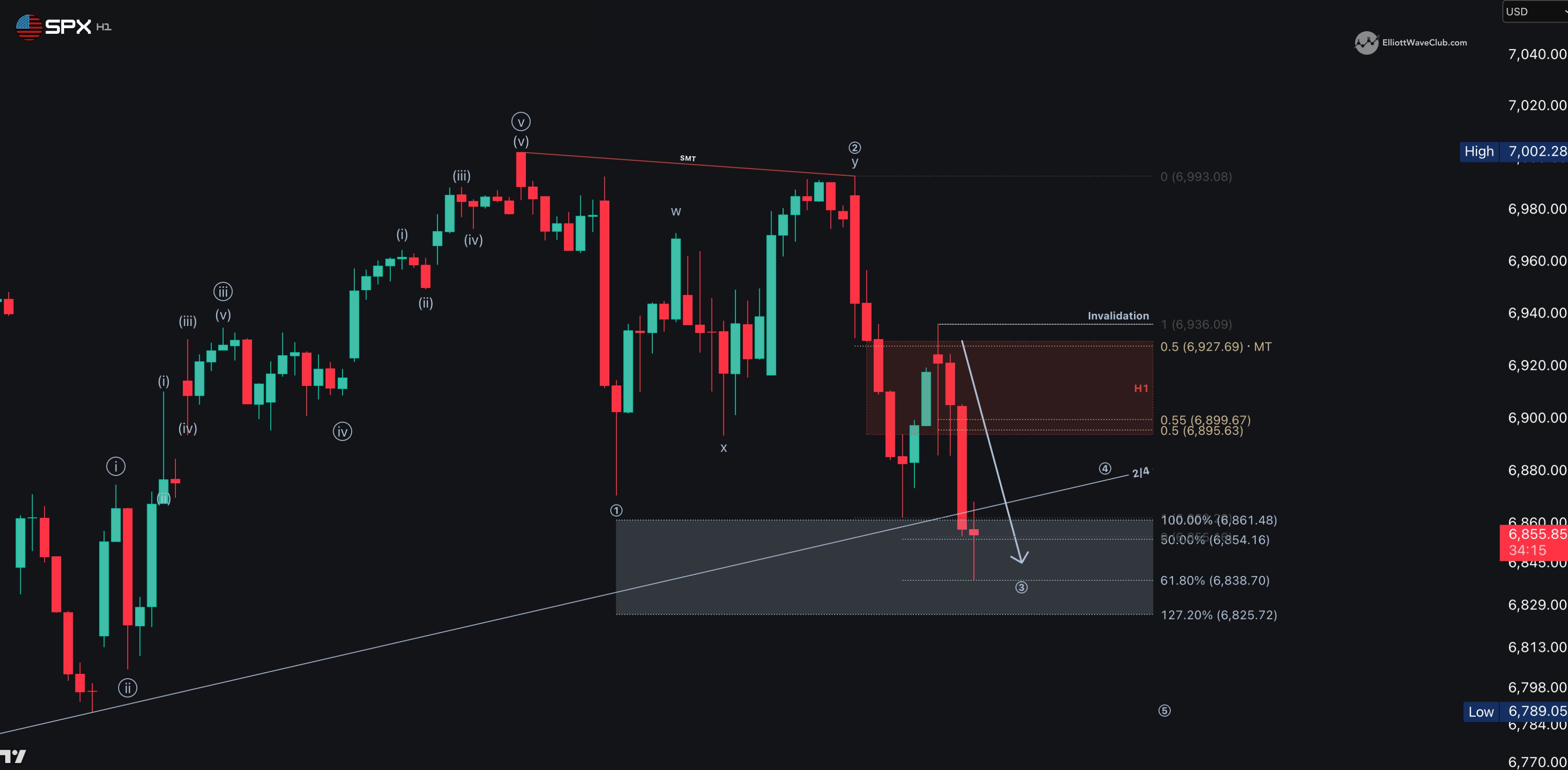 7000 Rejected. Trendline Broken. SPX Downtrend Confirmed