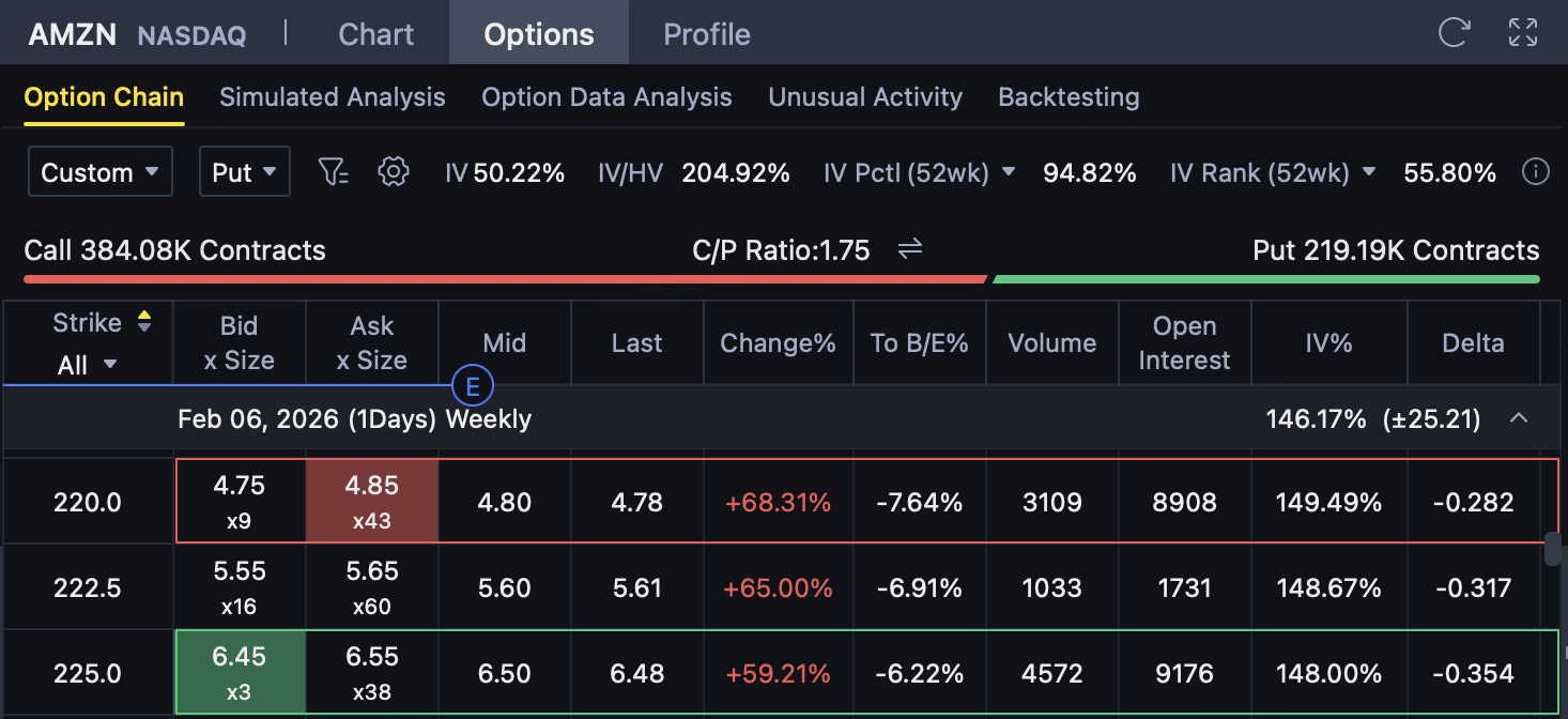 📉 Occurrence conditions: AMZN expiration price ≤ $220
