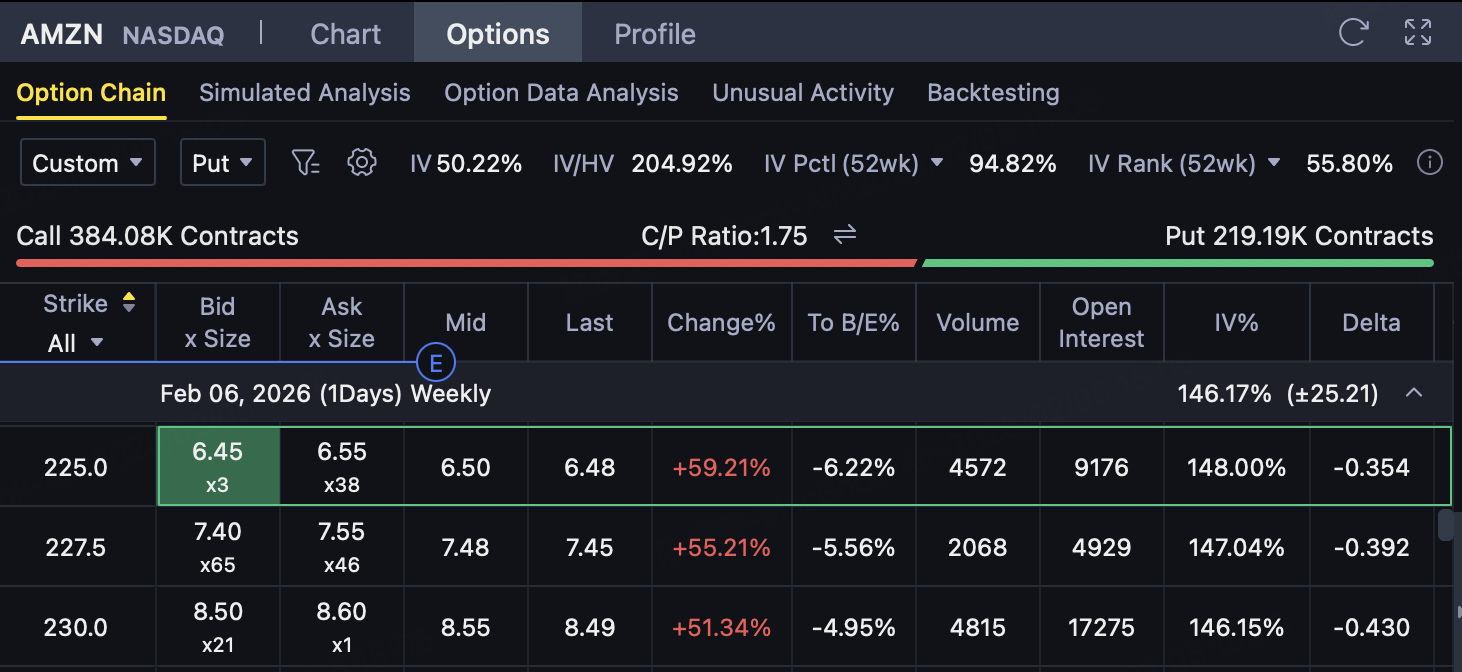 📈 Occurrence conditions: AMZN expiration price ≥ $225