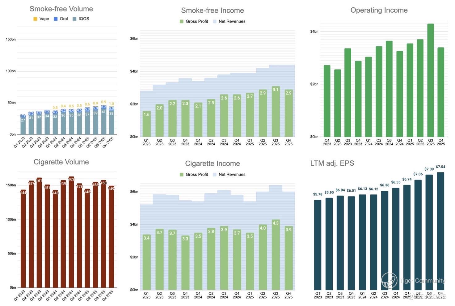 ๐ Smoke-free products now drive more than half of quarterly net revenues, with full-year smoke-free shipment volumes rising 12.8% to roughly 179B units, including IQOS HTUs +11% to 155B units, oral nicotine pouches +18.5% (with U.S. ZYN shipments +37% to 794M cans, ~11.9B pouch equivalents), and VEEV volumes surging +102% to 3.3B equivalent units.