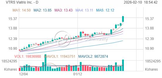 Viatris Inc. (VTRS) Soared +6.72%: Pharma Giant Hits 52-Week High at $15.60