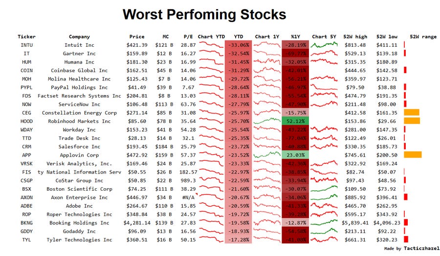 My colleague Hazel prepared the above overview of the worst-performing stocks YTD. As you can see, it is dominated by SaaS names.