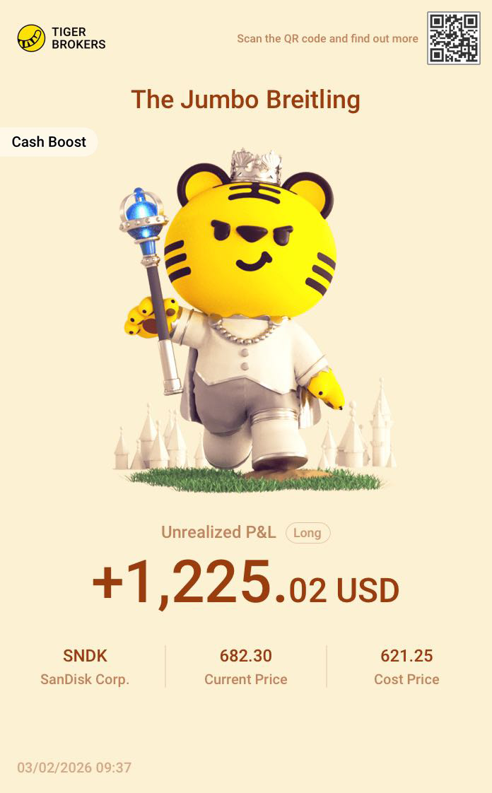 “Built my position while the market was still shaky, and $SanDisk Corp.(SNDK)$ now it’s riding the chip sector momentum. Strong earnings and a turning cycle are giving it steady power. Going against the crowd takes patience, but it feels right when the trend confirms your read. Staying steady in storage plays — sometimes doing nothing is the best move.”