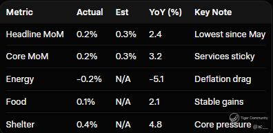 • Core 0.2% MoM vs 0.3% est, services sticky 0.3%.