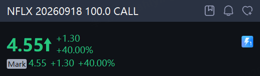 There are 1.29 million Netflix option contracts traded on Wednesday, up 277% from the previous trading day. Call options account for 84% of overall option trades. Particularly high volume was seen for the $50 strike call option expiring September 18, with 145,745 contracts trading. NFLX 20260918 100.0 CALL